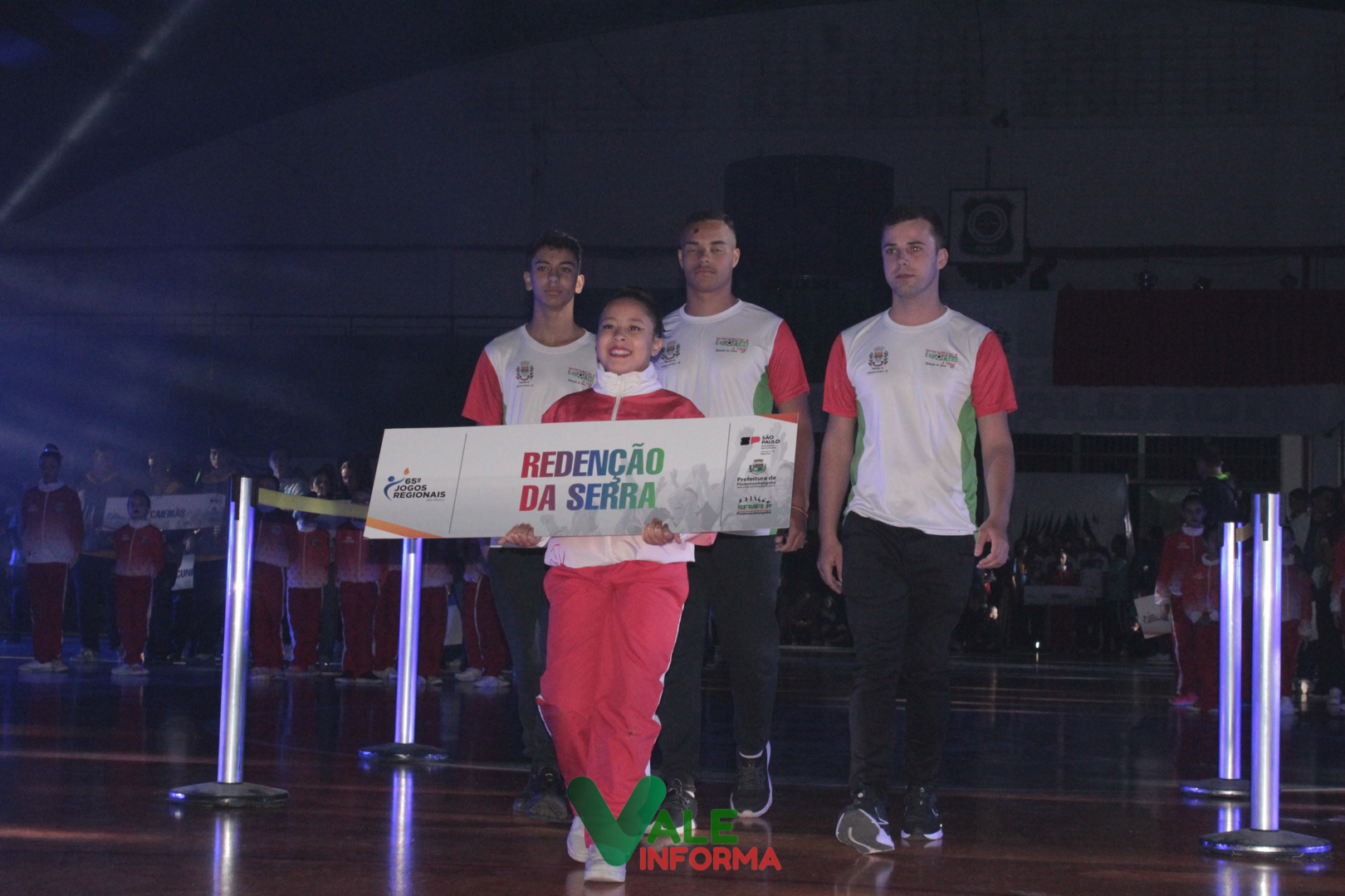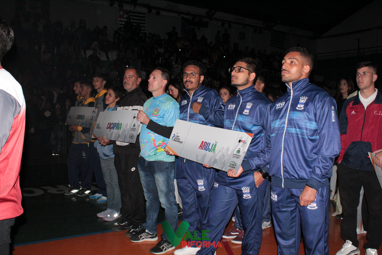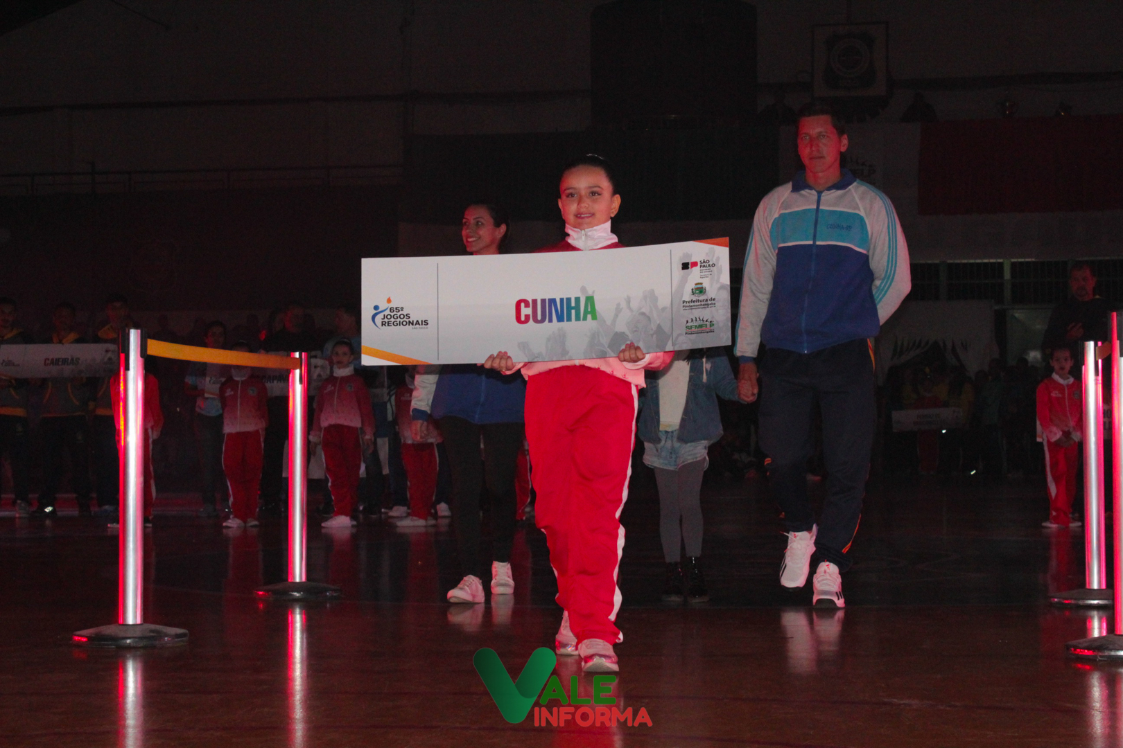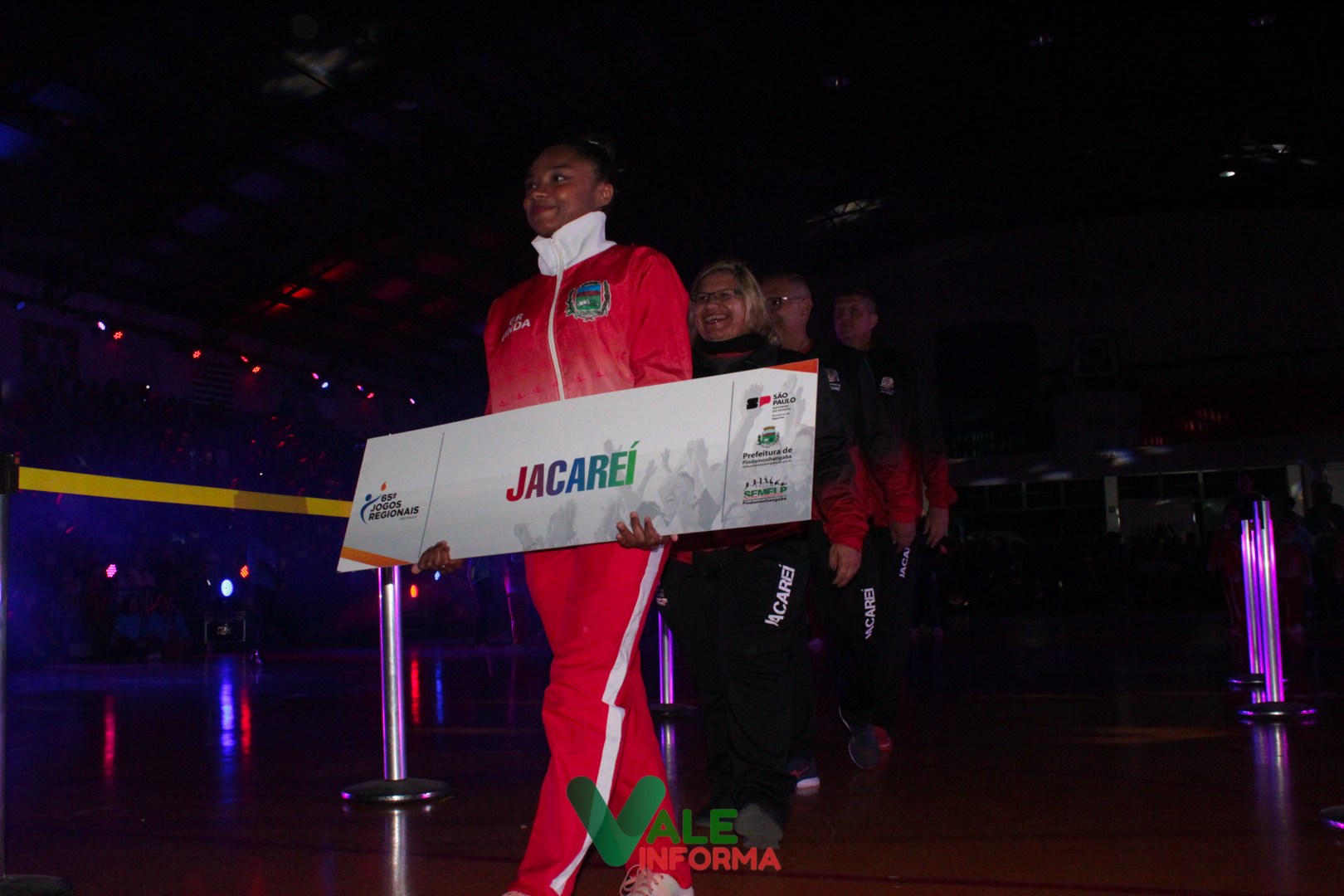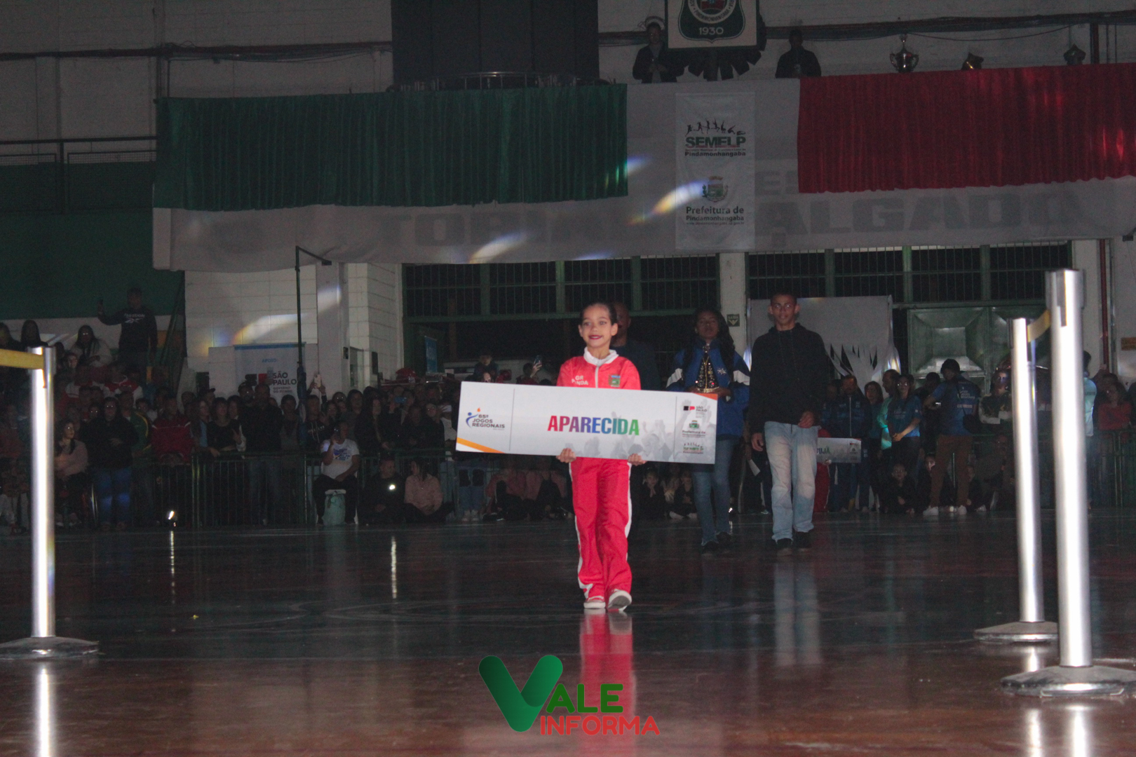 O desfile das delegações das cidades que disputam os Jogos Regionais abriu o evento. Os atletas de Pindamonhangaba foram os últimos a desfilar, sendo ovacionados e recepcionados com muito barulho por quem compareceu ao ginásio.