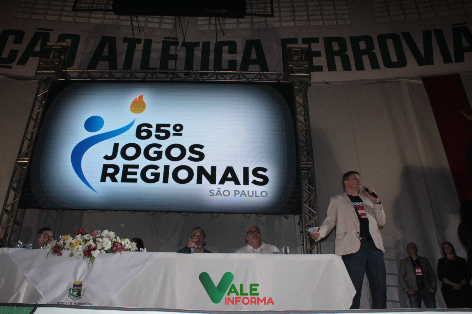 A cerimônia de abertura marcou o início dos 65° Jogos Regionais de Pindamonhangaba. O evento foi realizado na noite desta segunda-feira, 3 de julho, para um público que lotou as dependências do ginásio da Associação Atlética Ferroviária. É a sétima vez que Pinda recebe os Jogos Regionais, que neste ano terá a participação de mais de 4 mil atletas representando 40 cidades que compreendem a 2ª Região Esportiva do Estado de São Paulo