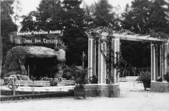 Construída em 1938, a Gruta do Parque Vicentina Aranha foi criada em alusão às aparições da Virgem Maria à menina Bernadette Soubirous, na gruta de Massabielle, em 1858, na cidade francesa de Lourdes. O espaço abriga as imagens sacras de Nossa Senhora de Lourdes e Santa Bernadete. Durante as aparições, quando perguntada pela menina acerca de sua identidade, a Virgem Maria disse “Eu sou a Imaculada Conceição”. Bernadette morreu em 16 de abril de 1879 e foi canonizada em 8 dezembro de 1933, dia da Imaculada Conceição, pelo Papa Pio XI.
