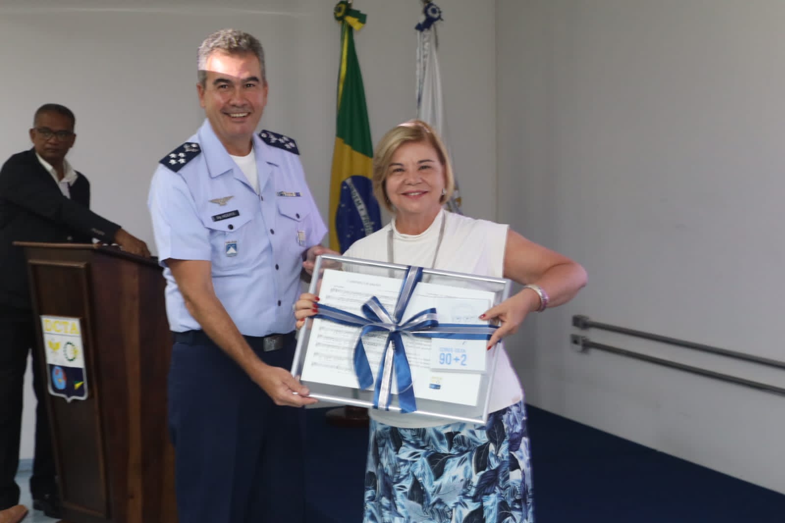 Para encerrar o dia de homenagens, o Departamento de Ciência e Tecnologia Aeroespacial (DCTA) apresentou a música intitulada “O Menino de Bauru”, de composição do 1º Tenente Betovem Dias e voz da 2º Sargento Rebeca. A canção retrata o sonho de um menino do interior, dentre tantos no Brasil, que possuía o desejo de voar. E, através de muito estudo e dedicação, superou as dificuldades de sua época e formou-se engenheiro aeronáutico pelo Instituto Tecnológico da Aeronáutica (ITA), na turma de 1962. Ozires Silva, com seu pioneirismo e genialidade, sempre acreditou que o Brasil, país do Pai da Aviação, seria capaz de produzir aviões. Assim, dedicou-se à engenharia aeronáutica e tornou possível a fabricação da aeronave Bandeirante, avião que deu origem à Embraer.