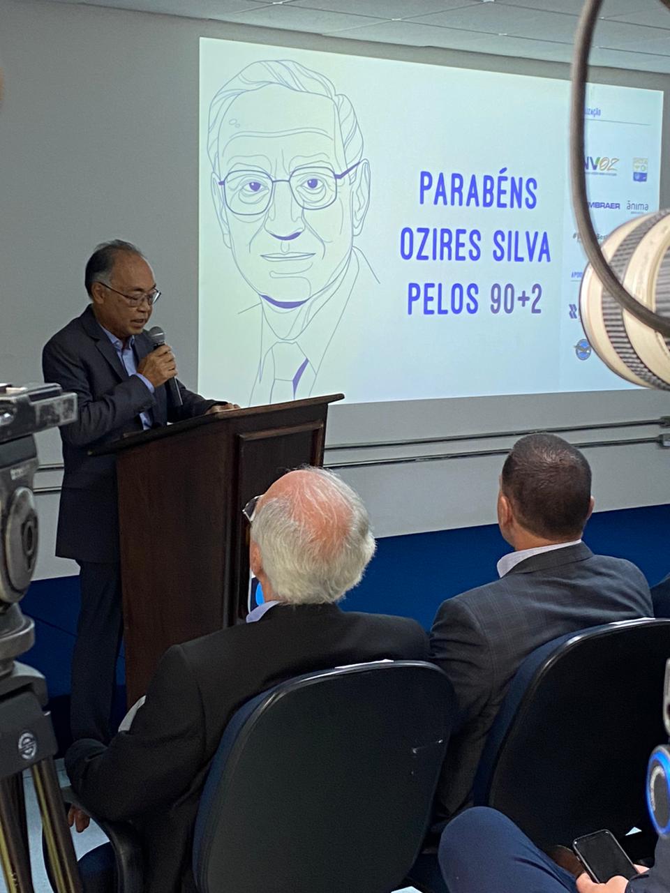 Em seguida, as homenagens foram iniciadas. O engenheiro Emílio Matsuo, presidente do Conselho Deliberativo do INVOZ, discursou brevemente sobre as várias iniciativas de Ozires Silva que vão além do empreendedorismo de reconhecimento nacional e internacional. Matsuo destacou também a transformação da sociedade por meio da educação, e a seguir foi exibido um vídeo sobre o aniversariante.