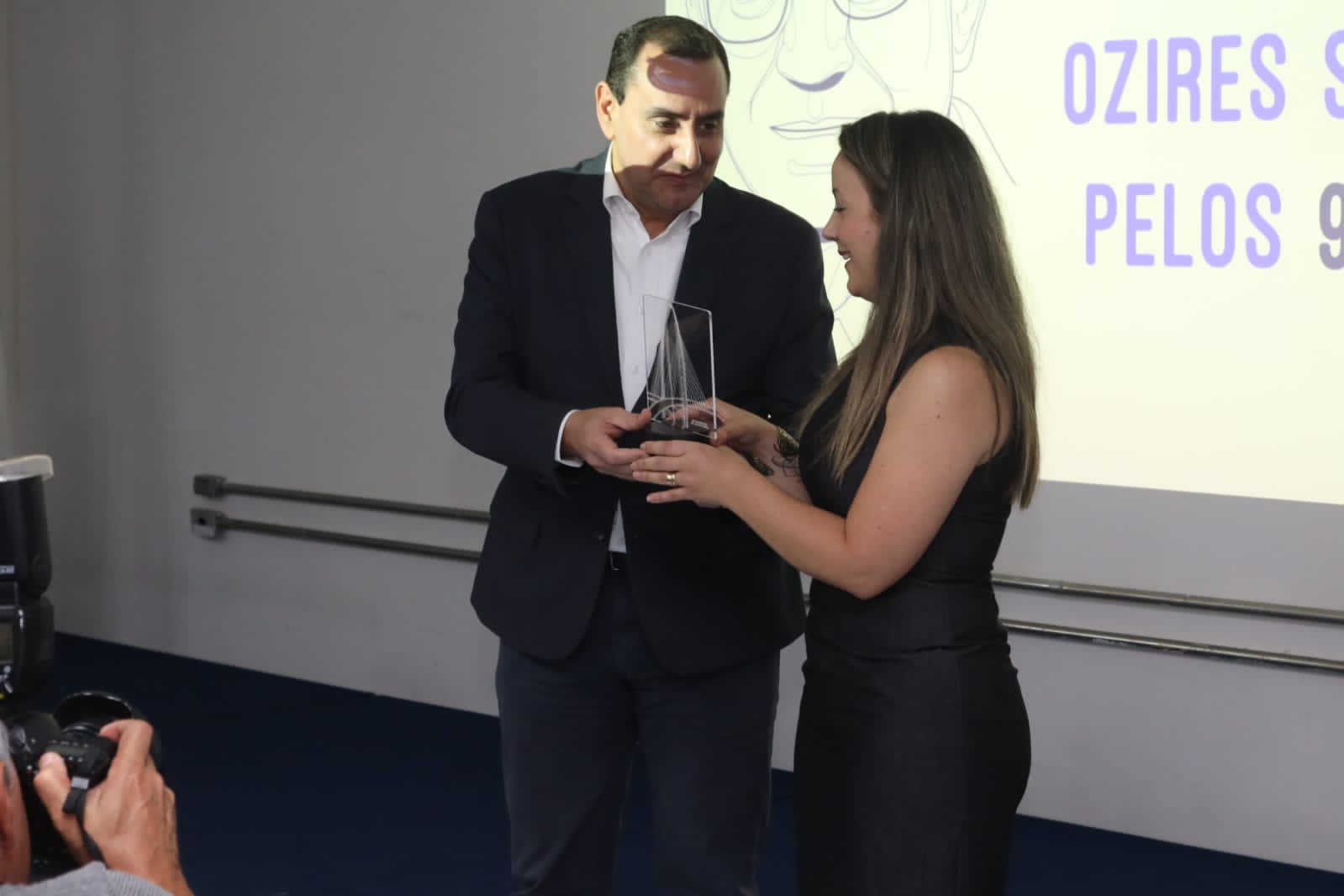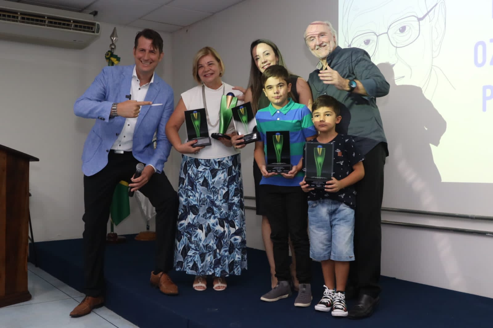 Hans Donner subiu ao palco e explicou aos convidados a concepção do troféu, que teve muito a ver com a visão futurista que Ozires Silva sempre teve e tem em sua vida.