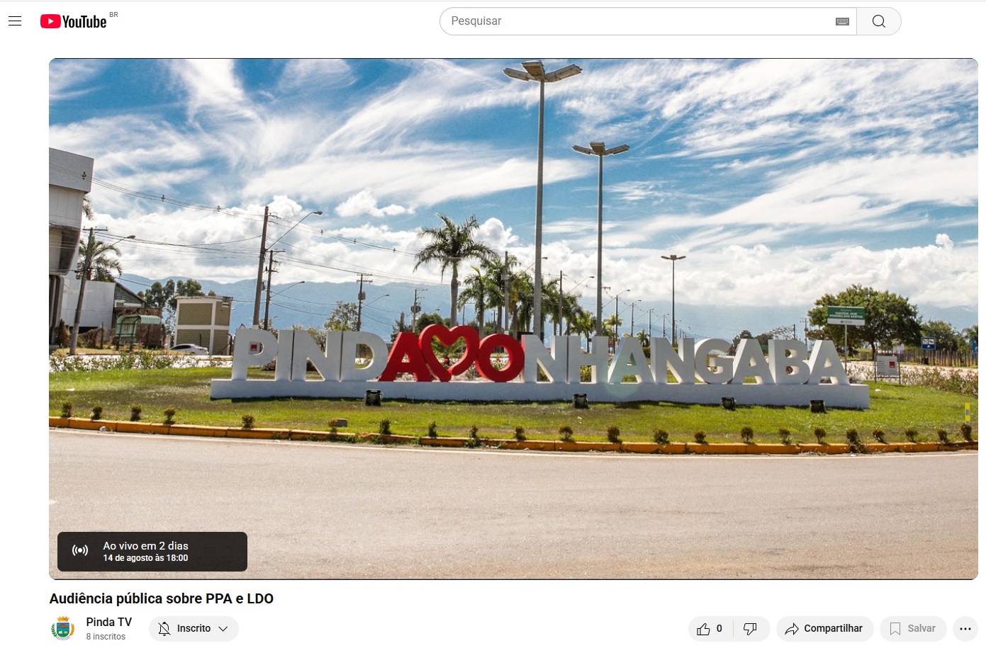 A audiência também será transmitida ao vivo pelo canal da TV Pinda no YouTube TV Pinda