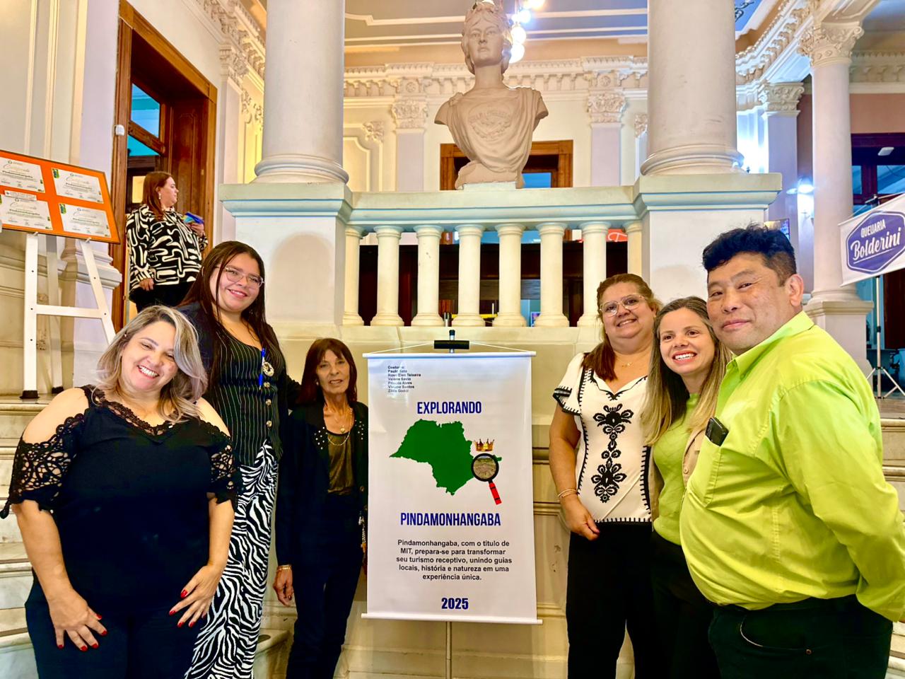 A Secretaria de Cultura e Turismo recebeu, na semana passada, a Mesa Redonda “Explorando Pinda”, realizada em 10 de novembro de 2025 pelos alunos Priscila de Azevedo, Paulo Sato, Rose Elen Teixeira, Valéria Sávio, Viviane Santos e Zilda Estevam, do curso técnico em Guia de Turismo do Senac Pindamonhangaba. O encontro aconteceu no Palacete 10 de Julho e integrou o Trabalho de Conclusão de Curso da turma, e também contou com interpretação de libras, apresentado por Stephanie Mota.