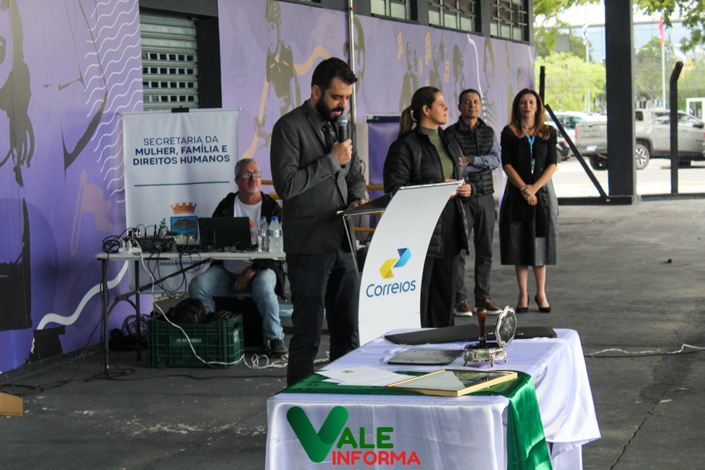 Os Correios realizaram em Pindamonhangaba, na quinta-feira (29), a cerimônia de lançamento do selo institucional em homenagem a João do Pulo – Herói da Pátria, Embaixador de Pindamonhangaba. A iniciativa é uma parceria com a Prefeitura de Pindamonhangaba, por meio da Secretaria de Mulher, Família e Direitos Humanos.